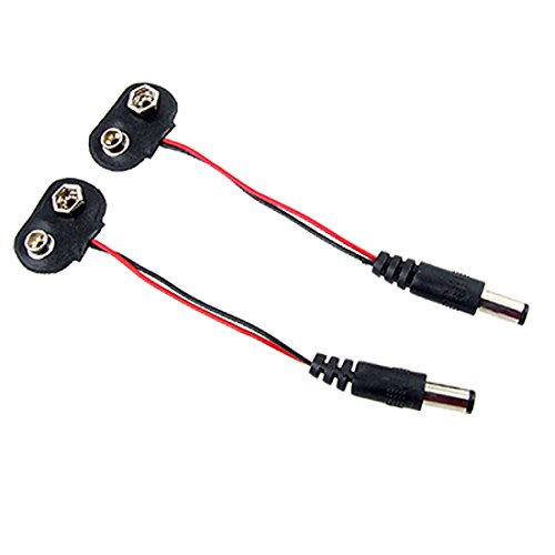 Uxcell a11030700ux0045 2Pcs 2.1x5.5mm Male DC Power Plug to 9V Battery Button Connector Cable (Pack of 2)
