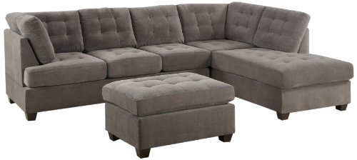 BOBKONA Michelson 3-Piece Reversible Sectional with Ottoman Sofa Set, Charcoal