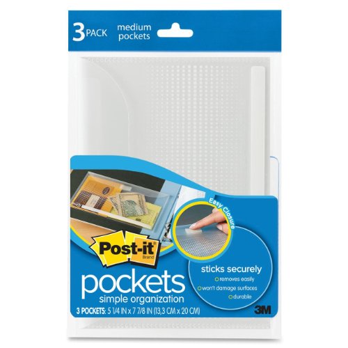 Post-it Pockets with Closure, Medium, 5-1/4 x 7-7/8-Inches, Clear with Dots, 3-Pack