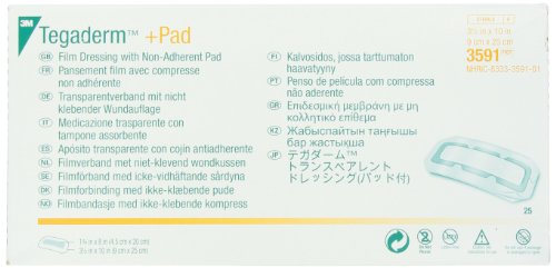 3M 3591 Tegaderm +Pad Film Dressing with Non-Adherent Pad, 25 Pads Per Pack
