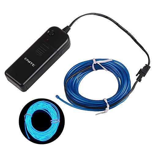 Onite 16.4ft Blue Neon Glowing Strobing Electroluminescent EL Wire Light with Battery Pack Controller for Parties, Halloween, Automotive, Advertisement Decoration