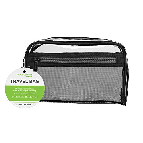 Travel Smart by Conair Sundry/Cosmetic Bag, Clear w/Mesh Pocket