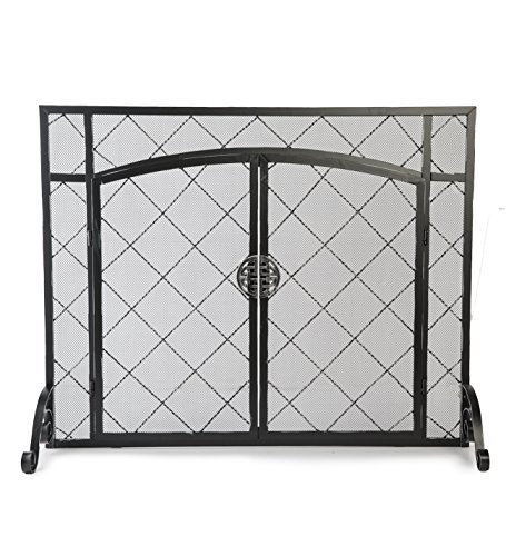 Celtic Knot Large Fireplace Screen with Hinged Doors, Powder Coated Steel Frame, Metal Mesh, Decorative Design, Free Standing Spark Guard- 44 W x 33 H Black