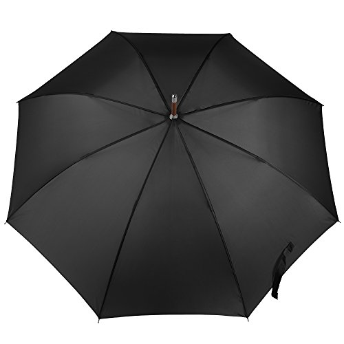 Totes Auto Open Wooden Handle J Stick Umbrella, Black