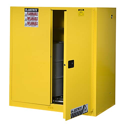 Justrite 899060 Sure-Grip Vertical Drum Cabinet with Rollers, Manual-Close, 60 Gal, Yellow