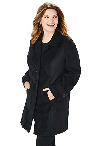 Roamans Women's Plus Size Plush Fleece Jacket - Black, 3X