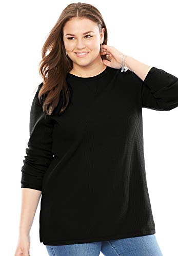 Woman Within Women's Plus Size Thermal Sweatshirt - Black, 1X