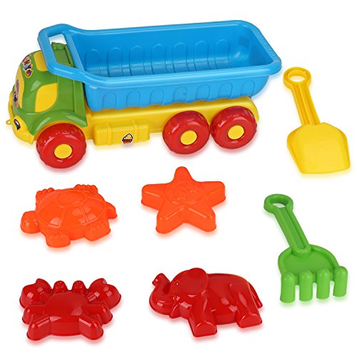 Liberty Imports Beach Toys Deluxe Playset for Kids - 7 Pieces Large Dump Truck Sand Shovel Set (Assorted Colors)