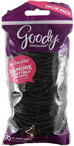 Goody Ouchless Elastic Hair Bands, No-metal, Black, 70 count