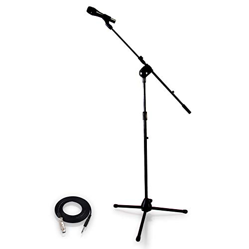 PYLE-PRO Dynamic Microphone and Tripod Stand - Height Adjustable from 2.6' to 5.1' ft and Telescoping Boom Arm Mic Length 7.48'' Inch w/ Acoustic Pop Filter - Includes 15' ft XLR Cable PMKSM20