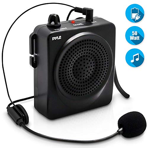 Portable PA Speaker Voice Amplifier - Built-in Rechargeable Battery w/ Headset Microphone Hands-free Waist-Band Strap & Aux 3.5mm Jack for External Audio Stream Devices - Pyle PWMA50B