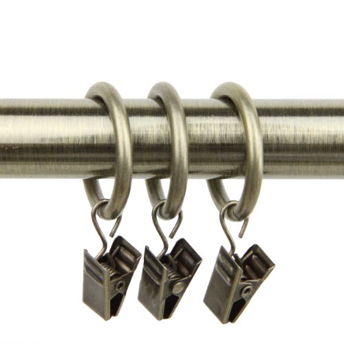 Rod Desyne 10 Count 1-Inch Curtain Rings with Clip for Windows, Antique Brass