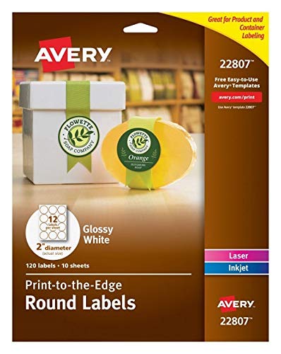Avery Round Labels, Glossy White, 2-inch size, 120 Labels – Great for Canning Labels and Mason Jars (22807)