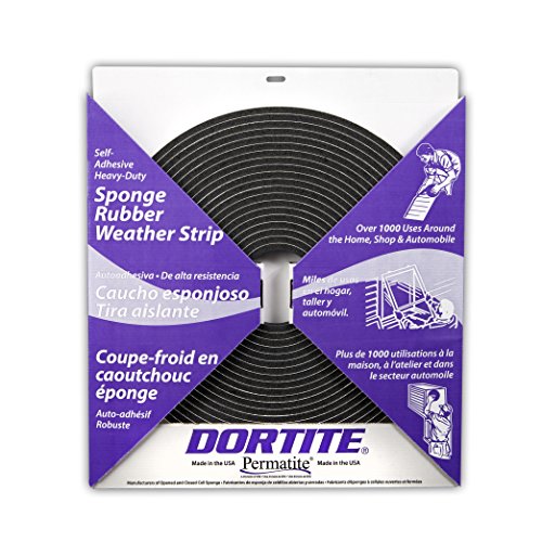Permatite Dortite Natural Open Cell Rubber Gasketing Sponge, 50' Length x 3/8" Width x 5/16" Height, Black