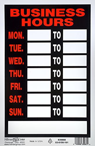 Hillman 839888 Business Hours Sign with Space for Fill in, Black, Red and White Plastic, 8x12 Inches 1-Sign