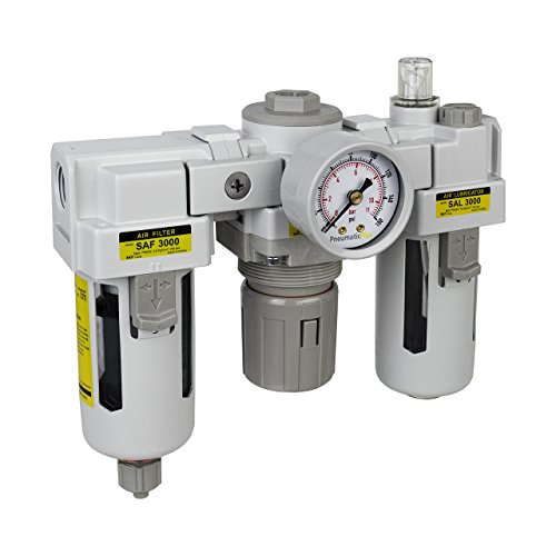 PneumaticPlus SAU3000M-N03G 3 Unit Combo Compressed Air Filter Regulator Lubricator, 3/8" Pipe Size, NPT-Manual Drain, Poly Bowl, 10 μm with Gauge