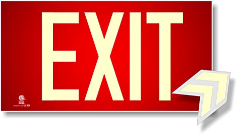 Photoluminescent Exit Sign Red - Aluminum Code Approved UL 924 / IBC/NFPA 101