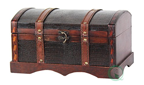 Vintiquewise(TM) Leather Wooden Chest/Trunk