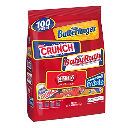 Nestle Chocolate Assorted Halloween Candy, Bulk Minis Bag with Butterfinger, Crunch & Baby Ruth (100 Count)