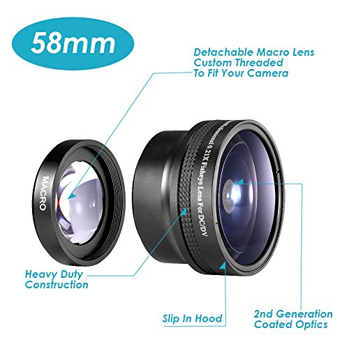Neewer Photography 58mm AF 0.21X Wide Angle + Fish-eye Lens for Canon Nikon Sony Pentax Olympus and Other DSLR Camera Lens with 58mm Filter Thread