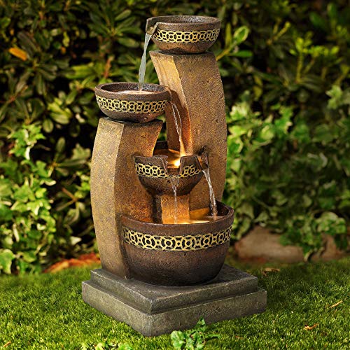 John Timberland Outdoor Floor Water Fountain Four Bowl Cascading Waterfall 41" Tall for Yard Garden Lawn