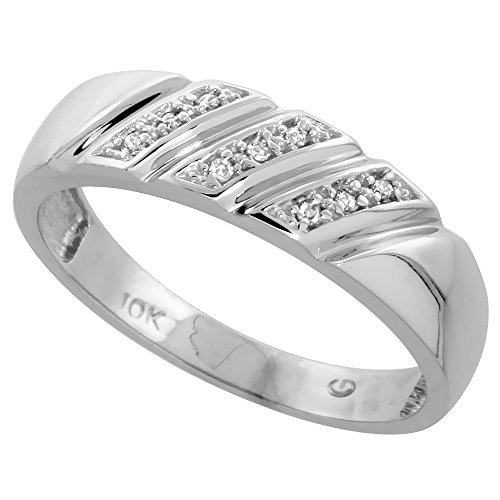 10k White Gold Men's Diamond Wedding Band, 1/4 inch wide, Size 14