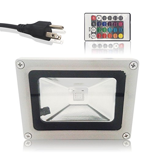 econoLed 10W RGB LED Flood Lights,Outdoor Color Changing Floodlight With Remote Control IP65 Waterproof LED Floodlight 16 Colors 4 Modes Dimmable Wall Washer Light Stage Lighting with US 3-Plug