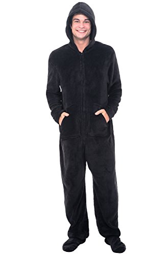 Alexander Del Rossa Men's Warm Fleece One Piece Footed Pajamas, Adult Onesie with Hood