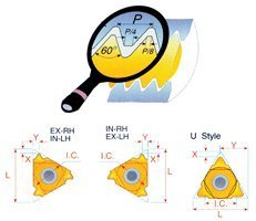 UN (Unified) Threading Inserts - External 16 ER12 UN P25C, Length: 16mm , I.C.: 3/8", Pitch: 12 TPI. Pack of 5 inserts.