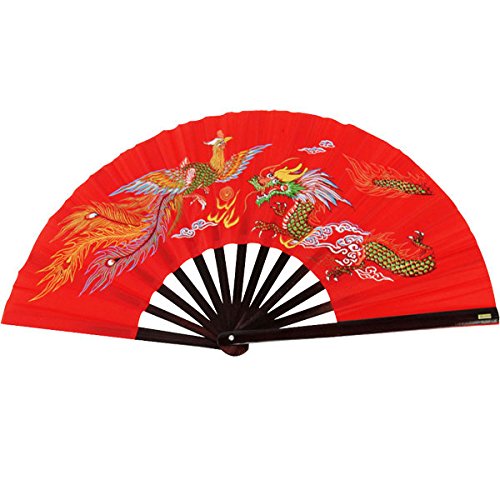 Bamboo Kung Fu Fighting Fan Dragon And Phoenix (red)