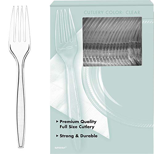 Amscan 43600.86 Big Party Pack Premium Plastic Forks, 7.3" x 5", Clear