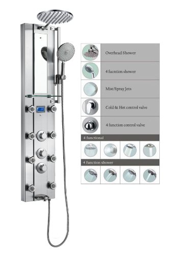 Blue Ocean 52” Stainless Steel SPV962332 Thermostatic Shower Panel with Rainfall Shower Head, 8 Adjustable Nozzles, and Tub Spout