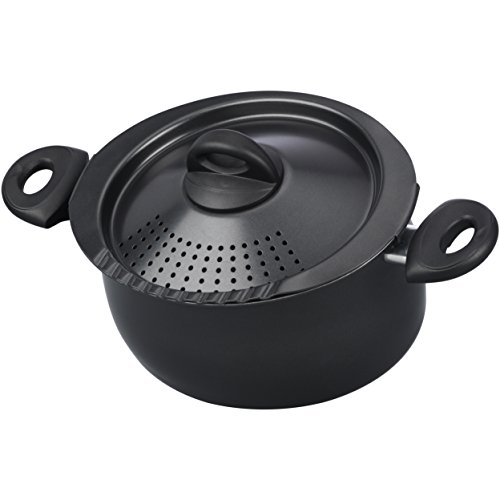 Bialetti 07265 Oval 5 Quart Pasta Pot with Strainer Lid, Nonstick, 1, Black