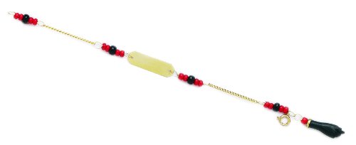 10k Yellow Gold Red and Black Beads 5 Inch Engravable Goldfield Baby Bracelet - Measures 6mm