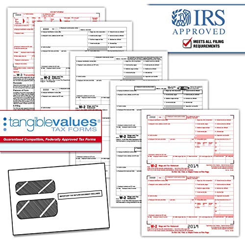 Tangible Values W-2 Laser Forms (6-Part) Kit with Envelopes for 25 Employees (2019)