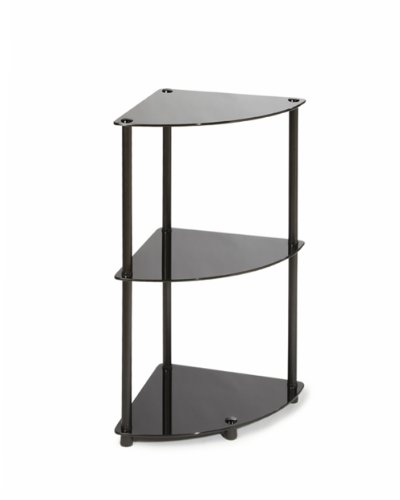 Convenience Concepts Designs2Go Midnight Classic 3-Tier Glass Corner Shelf, Black Glass