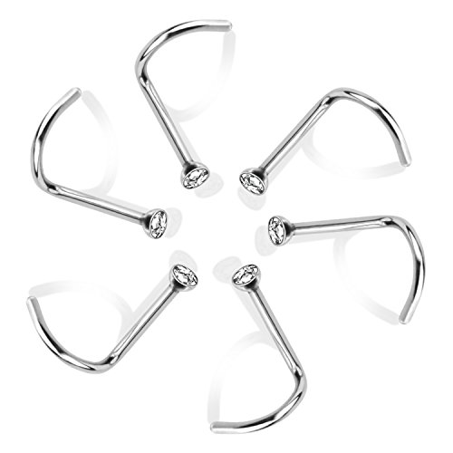 Rhinestone Stainless Steel Nose Ring Body Jewelry, 6 Count