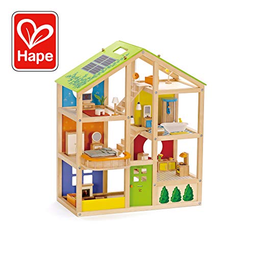 All Seasons Kids Wooden Dollhouse by Hape | Award Winning 3 Story Dolls House Toy with Furniture, Accessories, Movable Stairs and Reversible Season Theme