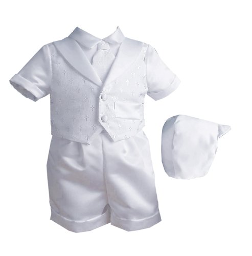 Lauren Madison baby boy Christening Baptism Infant Vestie Set With Short, White, 9-12 Months