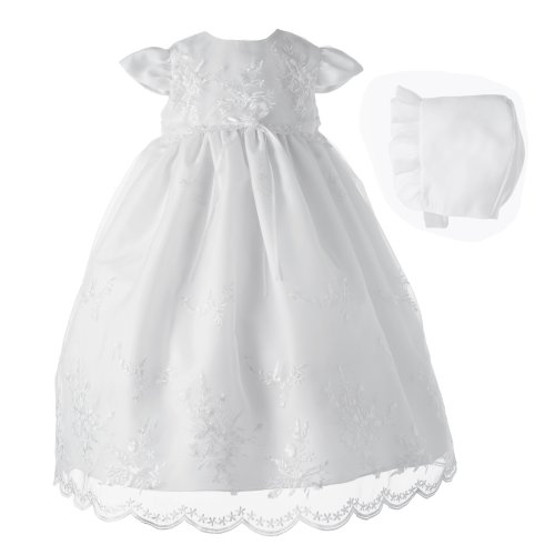 Lauren Madison Baby-Girls Newborn Christening Baptism Special Occasion Organza Floral Embroidered Dress Gown Outfit with Pearl Trim., White, 0-3 Months
