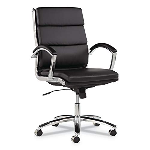 Alera ALENR4219 Neratoli Series Mid-Back Swivel/Tilt Chair, Black Leather, Chrome Frame
