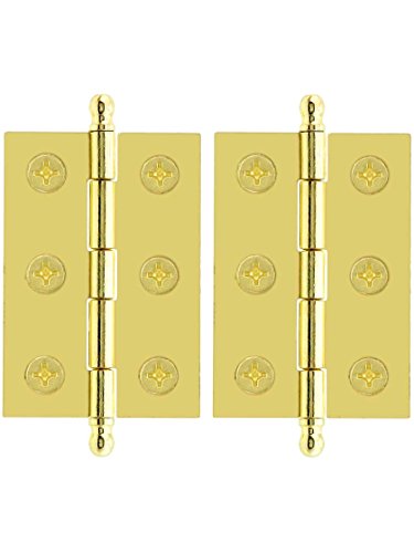 Pair of Loose Pin Plated Steel Cabinet Hinges - 2" x 1 3/8" in Polished Brass