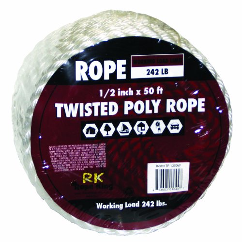 Rope King TP-1250W Twisted Poly Rope - White - 1/2 inch x 50 feet