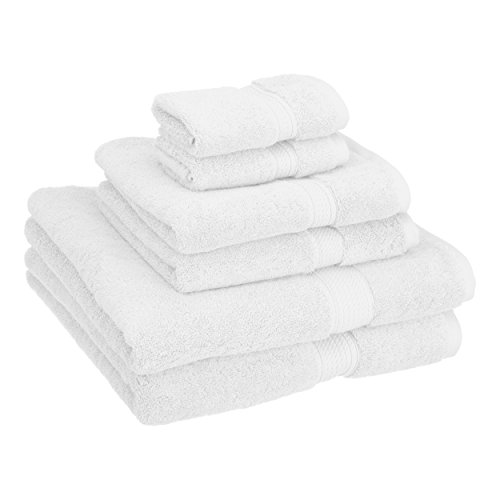 Superior 900 GSM Luxury Bathroom 6-Piece Towel Set, Made Long-Staple Combed Cotton, 2 Hotel & Spa Quality Washcloths, 2 Hand Towels, and 2 Bath Towels - White