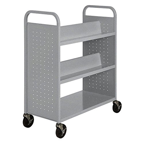 Sandusky SVF336-09 Black Heavy Duty Welded Steel Combination Shelf Book Truck with 4 Sloped Top Shelves and 1 Flat Bottom Shelf, 46" Height x 39" Width x 19" Depth