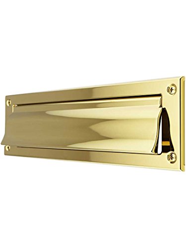 Solid Brass Magazine Size Mail Slot Front for Exterior Mounting in Polished Brass.