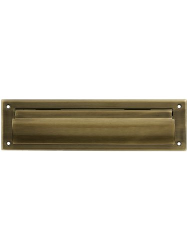 Solid Brass Magazine Size Mail Slot Front for Exterior Mounting in Satin Nickel.