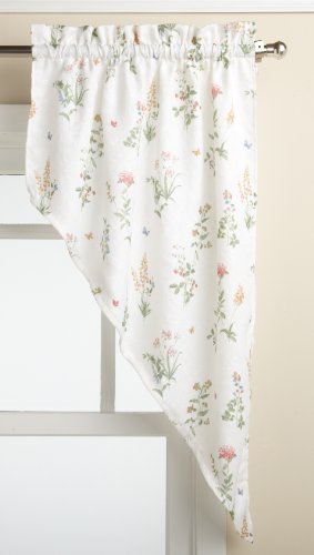 LORRAINE HOME FASHIONS English Garden 55-inch x 38-inch Swag Pair, White/Multi