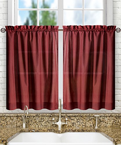 Ellis Curtain Stacey Sheer 56-by-36 Inch Tailored Tier Pair Curtains, Merlot, 56x36