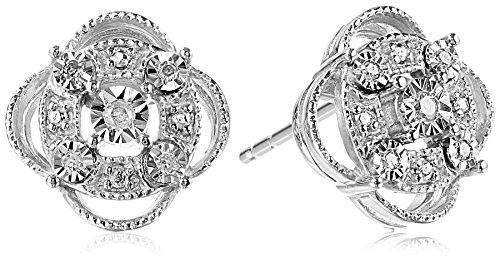 Sterling Silver Diamond Accent Pave Stud Earrings